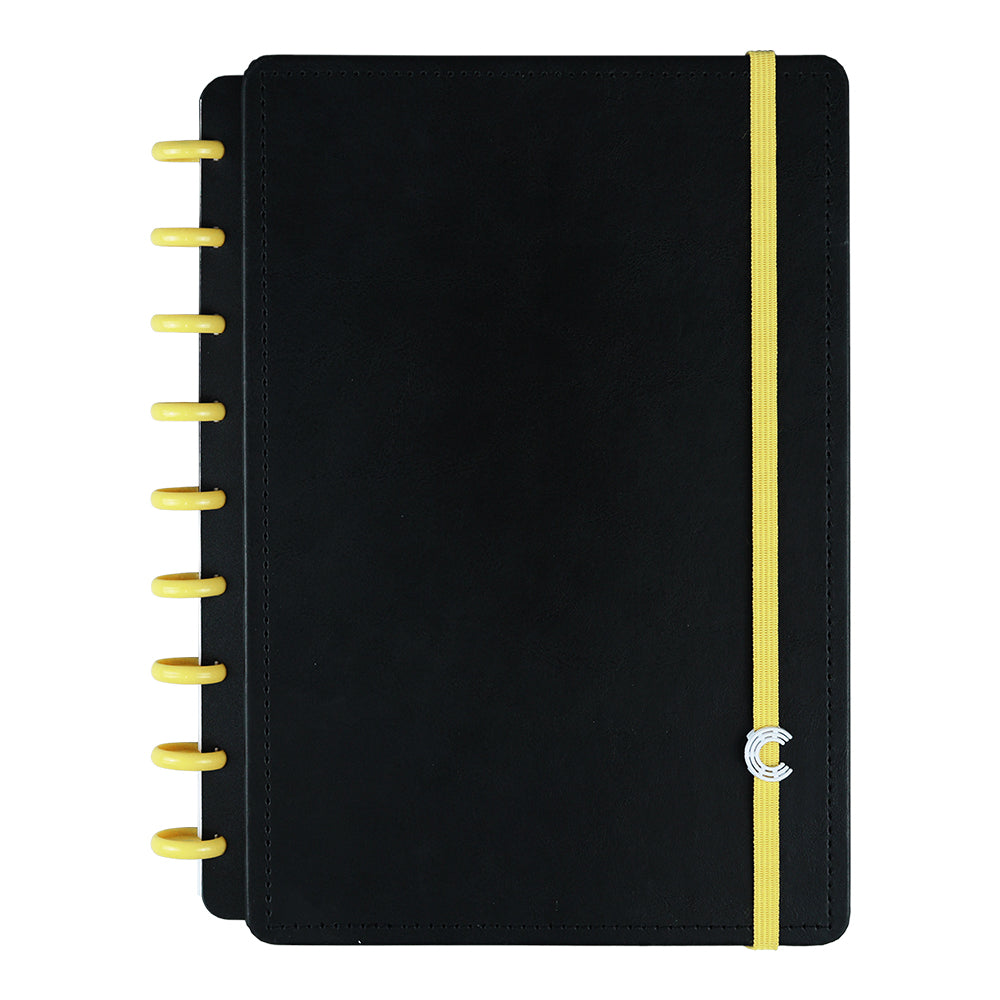Tamanho Médio. Comporta até 80 folhas de 90g ou 60 folhas de 120g Mude as cores dos discos e do elástico do seu Caderno Inteligente®, deixando-o sempre com cara de novo! ;)