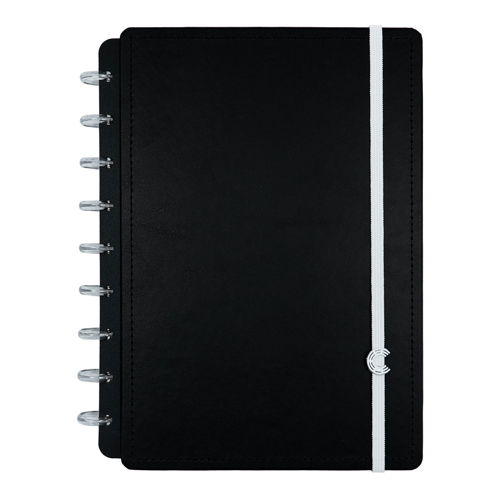 Tamanho Médio. Comporta até 80 folhas de 90g ou 60 folhas de 120g Mude as cores dos discos e do elástico do seu Caderno Inteligente®, deixando-o sempre com cara de novo! ;)