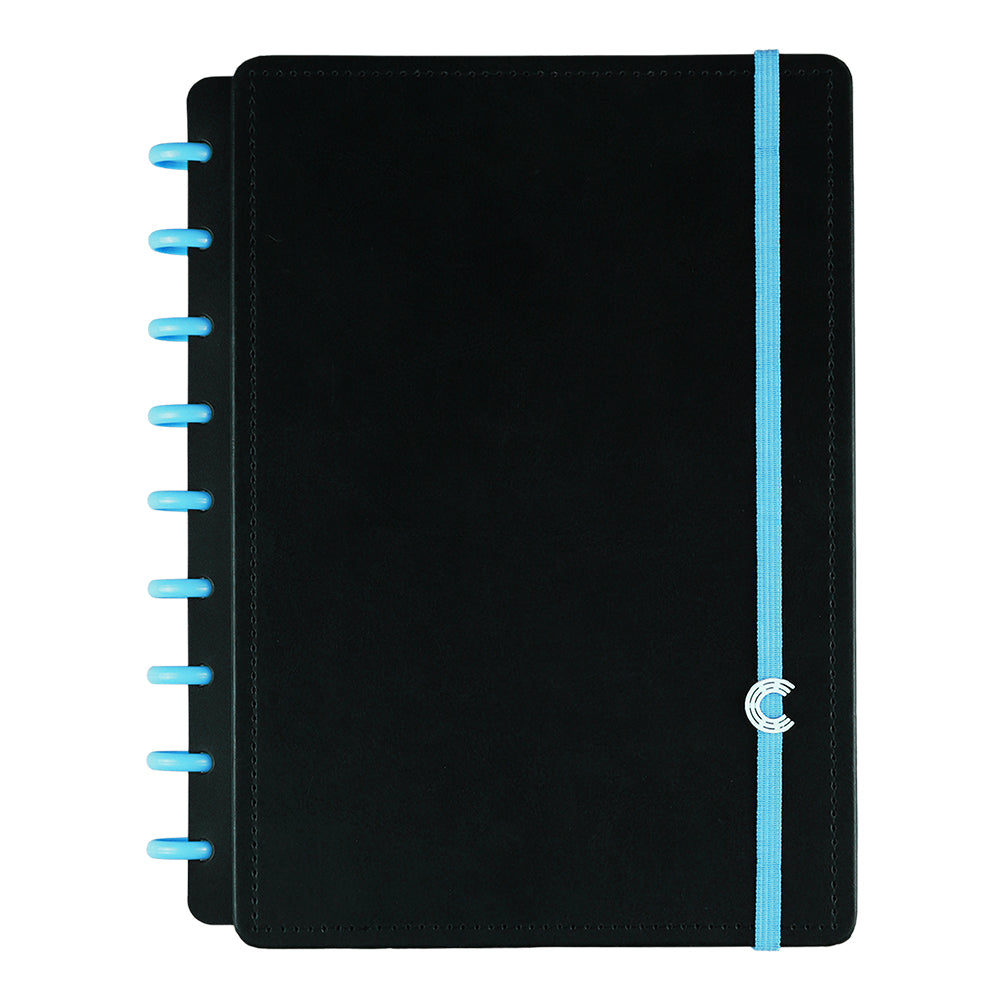 Tamanho Médio. Comporta até 80 folhas de 90g ou 60 folhas de 120g Mude as cores dos discos e do elástico do seu Caderno Inteligente®, deixando-o sempre com cara de novo! ;)