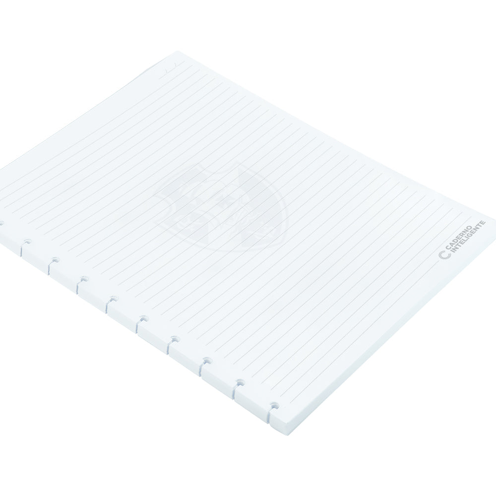 Tamanho Grande. Comporta até 150 folhas de 90g ou 120 folhas de 120g. Mude as cores dos discos e do elástico do seu Caderno Inteligente®, deixando-o sempre com cara de novo! ;)