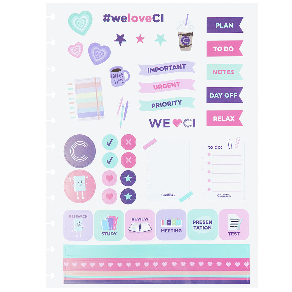 Tamanho Médio. Comporta até 80 folhas de 90g ou 60 folhas de 120g Mude as cores dos discos e do elástico do seu Caderno Inteligente®, deixando-o sempre com cara de novo! ;)