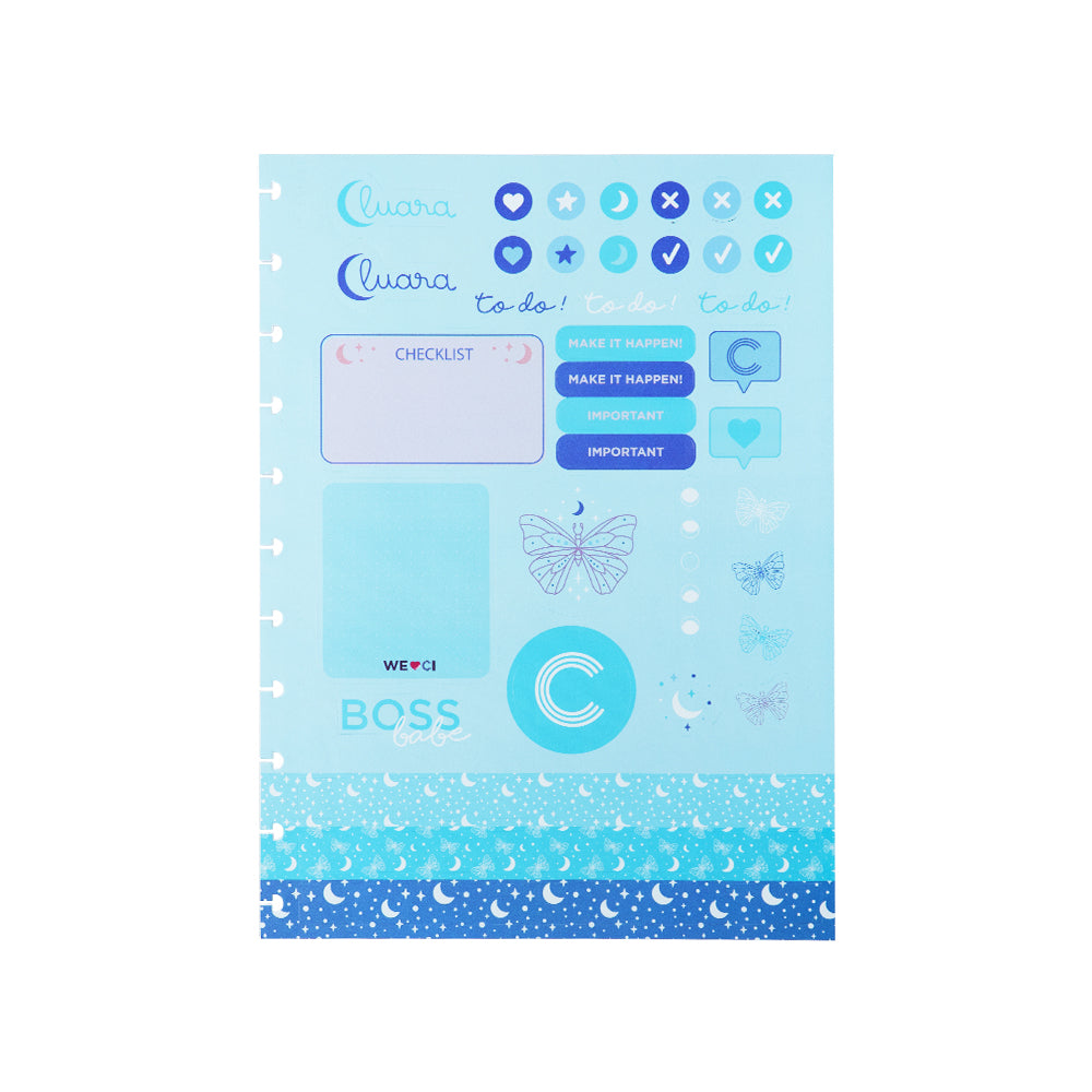 Tamanho Médio. Comporta até 80 folhas de 90g ou 60 folhas de 120g Mude as cores dos discos e do elástico do seu Caderno Inteligente®, deixando-o sempre com cara de novo! ;)